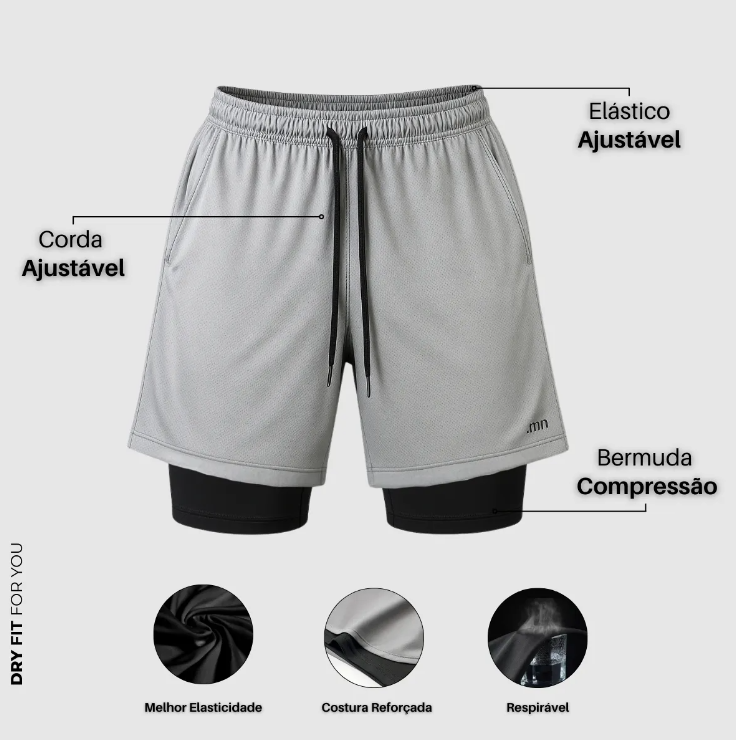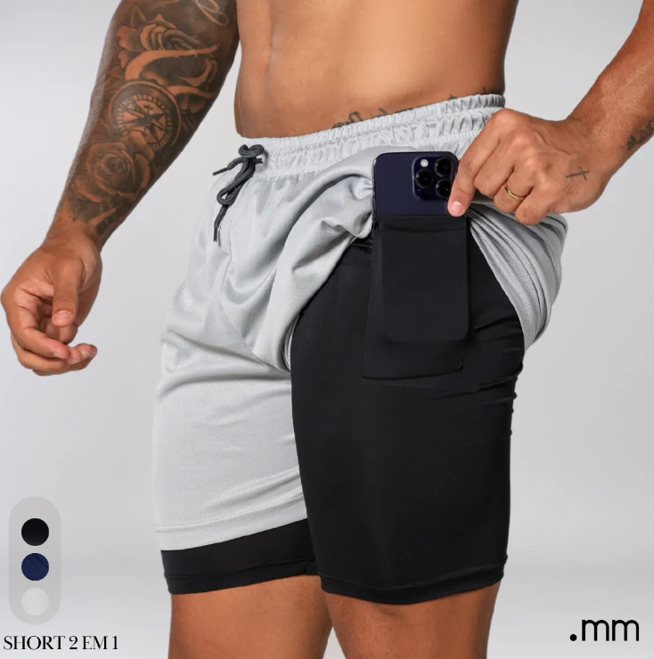A Bermuda Dupla Masculina 2 em 1 com Compressão foi desenvolvida para oferecer máximo conforto, suporte muscular e liberdade de movimento durante atividades físicas. O modelo conta com bermuda interna compressiva e short externo leve, garantindo mais segurança e praticidade nos treinos.